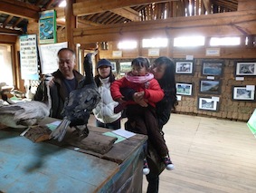 慕名而来的志愿者带着孩子一起到家园参观,孩子对展厅里展出的鸟类标本十分好奇,一定要就近看个清楚。