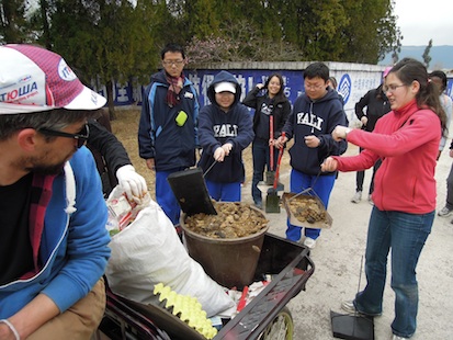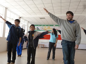 近距离观鸟  耶鲁大学的大学生也是务农好手  清洁拉市海的同时也为沼气池解决原料来源-  初捡马粪--不一样的感觉哦 2、农村支教 雅礼学子在来玉龙县二中支教之前做了大量的准备工作,并给队员们进行了培训,到达GEC后,每天晚上都在备课,每天支教结束后又及时进行总结。因此,在他们精心准备的后,玉龙二中同学从开始害羞,不开口到慢慢融入英语情景、开口学说、学唱、学跳,并忘情地与他们的支教“老师”交流、合作表演节目。  二中同学们向耶鲁大学生寻找攻破英语难题秘笈-  同学们已经开始融入的英语会话中了  自编自演英语节目 3、农村支农 雅礼学子非常热衷于社会服务, 他们到村里空巢家庭果园捡拾修建下来的果枝,与他们亲切交流,村民对雅礼学子的热情不怕苦不怕累的感触很深,活动结束后,大家都依依不舍。  帮助村民捡拾苹果园内修剪的树枝 4、走访农户和古城 晚上,晚饭过后,忙了一天的雅礼学子趁着夜色,分组到村民家进行家访,村民们也十分喜欢与这些孩子们的到来,尽管他们不善交流,但却在家里准备号了瓜子、茶水和火盆,等待孩子们来访呢。  走访当地农户 5、捐赠 耶鲁和雅礼的队员们每天都过的很充实,其实他们每一个人为了向农村学校和学生筹集资金,购买一批非常实用的体育用品、文具和书本等。同时还为当地的学校购买了一台多媒体教学投影仪(projector),并在支教活动结束后捐赠给了玉龙二中。正如该校唐校长在接受捐赠物品时说的,农村中学正在不断完善中。  唐校长代表玉龙二中接送耶鲁雅礼同学捐赠的投影仪和一批体育器材  同在蓝天下成长 |