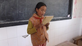 在老师的鼓励下,四年级的杨丽婷同学走到台前讲了自己的读书感想