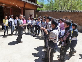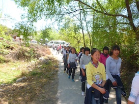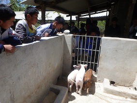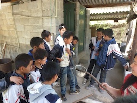 同学们学习了沼气科学原理后到沼气猪舍实地参观