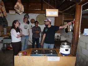 2012-4-14:美国和加拿大客人参观家园 The GEC welcomed two foreign guest to the compound and gave them a tour of the site and the exhibition hall. We welcomed Darcy, an artist from Seattle, WA, who just finished a residency program in Lijiang, and Kevin from Toronto, Canada who is currently traveling around the world. After the tour we had a heartfelt discussion and exchange of ideas in regards of the GEC’s role in promoting sustainability in China. 绿色家园今天欢迎了两位外国参观者,并且给他们介绍了我们的组织与展览厅。我们欢迎了来自美国西雅图的Darcy,一位在丽江工作的艺术家,以及来自多伦多加拿大的Kevin,一位环游世界的旅客。科普教育介绍后,我们的员工与两位访客进行了有趣的交流,讨论了有关中国可持续发展的话题。  客人赞赏家园开展的科普环保教育  客人对沼气的多重效益表示惊讶 |