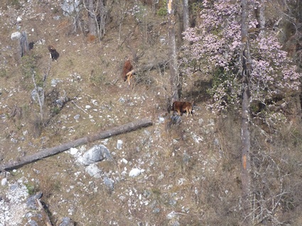 雪山下无忧无虑的牛