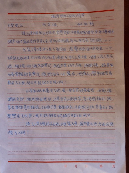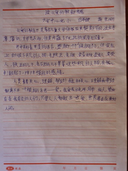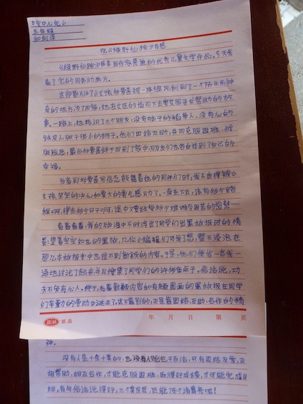 玉龙县太安乡太安完小木校长到丽江办事路过位于拉市海安上村的绿色家园时,顺路也将该校参加书桥活动的同学们写下的读后感送到家园负责书桥项目的工作人员手中。手捧孩子们的读后感,我们不禁感慨:书桥不仅可以开启孩子们的心灵,同时还能把他们的感想和心声传递给爱护他们的书籍捐赠者。以下选择三篇与大家分享。