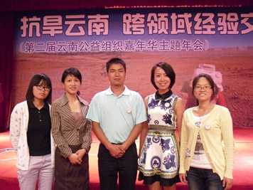 2012年4月21日云南生态网络绿色教育中心、一株树志愿者联盟的秘书长刘丽波与联盟昆明办协调人高海玲参加了由云南信息报公益周刊、草根公益支持中心联合主办的“抗旱云南跨领域交流会——第二界云南公益组织嘉年华主题年会”。来自云南四十八家机构的一百多人参与了会议,整个交流会围绕“抗旱云南”展开,旨在分享各个领域在抗旱方面的经验与成绩,并致力于整合资源,跨领域经验分享以及寻求多方合作。联盟在会议上与各方领域参会者加强交流,积极寻求合作机遇。——高海玲
