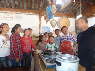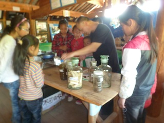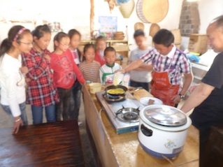 五一节假日,大人们带着孩子在家园旁一农家乐休闲做客。当孩子们看到绿色家园的招牌后,相约走进家园,他们很想知道这个家园是做什么的。绿色家园的老师热情接待了他们,带着他们参观展厅,一面参观、一面向他们讲解科普环保知识。最后为了解除孩子们提出的疑问,绿色家园老师专门安排孩子在厨房里用沼气煎鸡蛋,通过亲自动手,亲自品尝,孩子们对垃圾、肥料和沼气的知识有了了解,并打算将学到的知识介绍给其他同学。  同学们在认真听老师讲解  同学们对鸟的嘴巴很好奇  同学们听老师讲解有机物分解消化知识  同学们来到沼气出料口想看一个究竟  这名同学在煎鸡蛋前听老师讲解沼气点火要领  在家里,这名同学经常帮助妈妈,因此,用沼气灶煎鸡蛋难不住他  鸡蛋有点咸,沼气煎鸡蛋不臭 |