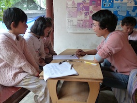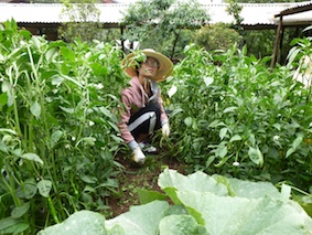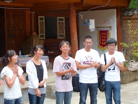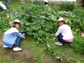 同学们用从菜地里刚刚采摘的新鲜南瓜制作南瓜蛋羹 与来自英国华威大学的同学们相会在拉市海