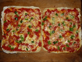 在沼气灶上准备披萨材料
