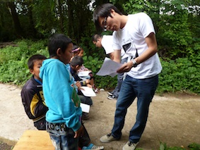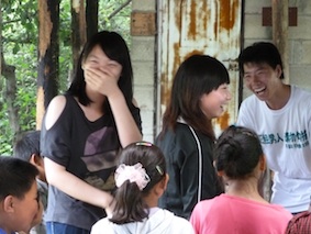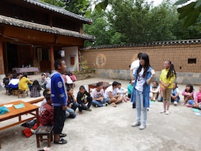 来自英国华威大学的同学们利用在家园开展社会实践的机会,与家园联合义务为拉市乡农村孩子举办暑期英语辅导培训活动。这项活动得到了农村学校和家长的热情支持和配合,许多家长带着孩子从几公里以外的村子来到家园。这个活动的开展给了农村孩子学习英语提供了良好的机会,丰富了农村孩子的暑期生活,增进了中英同学们之间的友谊。一组照片如下。 一对一用英语交流