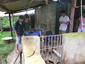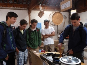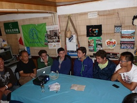 This morning, another group from There Will Be Dragons (Dragons), an organization that brings American high school students to different countries around the world for experiencal learning, visited GEC today. It was a small group of five guys including their teacher, Daniel (Danny). They hailed from states including New York and North Carolina. They are here studying Chinese like the other Dragon group that came last week. They were all high school sophomores in China for the summer. We gave them a tour of GEC and held a discussion regarding various environmental topics. They also met and discussed with the students from Warwick University in the U.K. We also took the group to Lashi lake and introduced the different towns around the lake. Unfortunately, it was raining and we didn’t get a chance to see the true beauty of the lake.  在沼气灶上煎一个鸡蛋