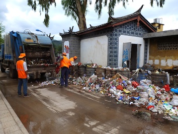 位于丽江市古城区城乡结合部的束河古镇黄山完小由于其特殊的地理位置近年来备受垃圾围校困扰,开学伊始全校师生做的第一件事情就是清理校门外成堆的垃圾。校园外原本为方便学校设立的垃圾定点收集桶变成了附近居民、外来务工家庭倾倒生活垃圾、餐厨垃圾的便利场所,这些垃圾堆及其散发出来的阵阵恶臭既有碍观瞻,也给学校师生的身心健康带来极大危害。为此,在举办全校有学生家长参与的“小手拉大手-科学环保走进黄山完小”培训活动后,校方决定与绿色家园合作,启动创建“绿色校园”示范项目。该项目将通过班级示范开展校园垃圾-资源调研,探索出适合本校的“垃圾-资源”绿色行为和管理模式,在全校乃至家庭实施,进而影响和带动学校周边社区形成良好的环保风气和文明卫生习惯。