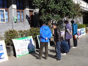 截至2012年11月底,绿色家园在丽江市玉龙县开展的“科学环保进校园”阶段性培训活动已经圆满结束。来自该县58所超过2万名师生和部分家长参加了培训活动。“科学环保进校园”活动开始受到越来越多的公众的关注。最近,绿色家园与丽江市古城区教育局就开展古城区“科学环保进校园”培训活动达成合作意向,由古城区教育局牵头在古城区20所小学开展培训。在古城区大研街道中心校的协助下,首期4所小学的培训活动已经结束。请欣赏培训现场发来的照片(按培训时间顺序)。 欲了解更多信息请同时关注丽江绿色家园博客 http://www.blog.sina.com.cn/ljgec或微博 http://weibo.com/ljgec 2012-12-20:“科学环保进校园”培训活动在友谊完小  培训现场  同学们在台上协助老师讲解垃圾知识  在记笔记的同学们  这位同学在向老师提问  这两位同学对老师提出的问题有着不同的反应  一名学生代表宣读科学环保倡议 2012-12-20:“科学环保进校园”培训活动在新华小学 同学们协助绿色家园老师搬运展板和教具  扛着凳子的同学们  举手抢答的同学们  正在回答问题的一名一年级学生 2012-12-21:“科学环保进校园”培训活动在兴文小学  同学们打扫校园迎接培训活动  学校负责人在和绿色家园老师在布置培训活动  这位同学用双“V”表示对科学环保培训进校园的欢迎
