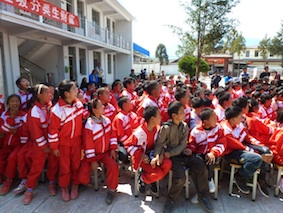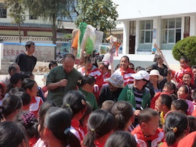 培训吸引了同学们的注意力(白马完小) 两所学校810名师生和家长参加了这个独特的纪念日培训活动,大家通过倡导垃圾不落地和垃圾分类来破解“垃圾围校”困境。培训活动受到师生和家长们的普遍欢迎,吸引了当地媒体的关注,一些学生在培训活动结束后主动上来与绿色家园老师握手告别。欲了解更多信息请同时关注丽江绿色家园微博 http://weibo.com/ljgec或博客网站 http://www.blog.sina.com.cn/ljgec