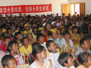 坐落在玉龙雪山脚下的白沙完小是一座具有280年历史的学校,校园内绿树成荫,校园道路旁盛开的樱花与远处的玉龙雪山交相辉映,更增添了学校的厚重感。在这个宁静的校园内绿色家园为雪山的后代举办的“垃圾不落地”知识讲座,为校园增添几分现代的气息。欲了解更多信息请同时关注丽江绿色家园微博