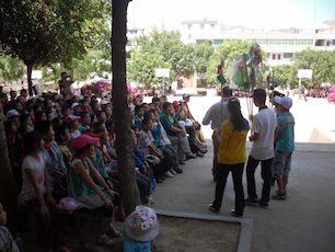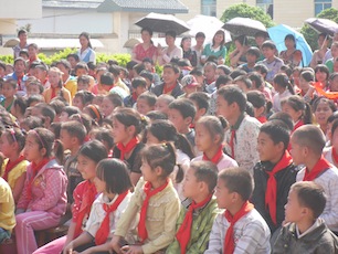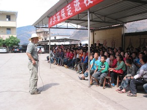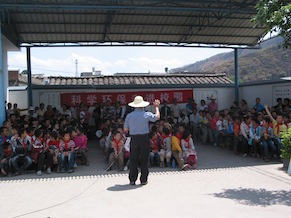 4月15日,从宁蒗县跑马坪秀清希望学校沿着曲折蜿蜒山路向东南方向驱车110公里,绿色家园科普培训工作人员来到了位于四川、云南两省交接地的丽江市华坪县,这里属金沙江水系,具有典型的南亚热带低热河谷气候特征,热区资源和矿产资源十分丰富。一星期前华坪县5个乡镇10所小学校的师生们获知了“小手拉大手.科学环保进校园”活动的信息后就在翘首企盼了。由于华坪县气候炎热,为了避免师生和家长头顶烈日可能出现中暑情况,在团县委和校方组织者的支持和配合下,培训活动采取了灵活对策,既保证了培训活动的正常开展,也确保了学校教学课时不受影响。 4月19日下午2时,绿色家园老师提前1小时来到了拥有1500名师生的华坪县荣将中心校查看培训场地,看到空旷的操场烈日炎炎,大家一时没了主意,有的老师提出安排一个年级的学生在一个可以容纳200人的大教室内培训,有的老师马上提出反对意见,认为只让少数同学参加这个活动对大多数同学不公平,因为全校同学们几天前接到培训通知后就开始兴奋和期待着这场活动了。为了确保1500名师生能够如期参加培训,校方和培训方巧妙地利用了校园操场北面一幢教学楼投下的一片阴影和南面操场旁几棵大树留下的几片树荫,虽然培训现场被分割成了几大块,但所有师生不仅参加了培训,而且现场秩序井然,培训达到了预期的效果。本次在华坪县开展的科学环保进校园培训活动共计有近7000名学生、老师和家长参加。欲了解更多信息请同时关注丽江绿色家园微博 http://weibo.com/ljgec或博客 http://www.blog.sina.com.cn/ljgec2013-4-15 兴泉镇中心校