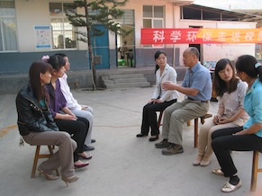 同学们开心地学习环保科学知识  学校老师与培训老师交流