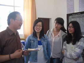与美泉完小的老师讨论上课内容  在二中上课现场