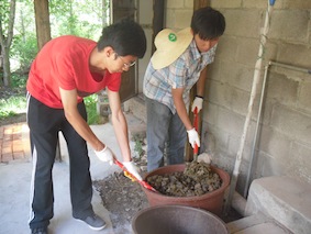 亲自动手为沼气池添料