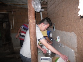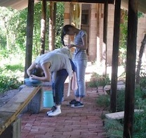 自己洗碗  干旱缺水,同学们用盆打水洗头